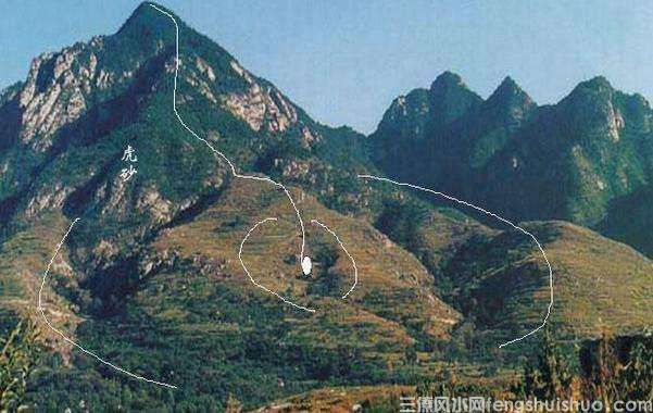 大家可以想像一下,假设现在跑到一个风水穴地,站于墓穴之间,向左方看去,见有一近身的“青龙砂”保护,这砂更是向内弯抱的﹔假如再向右方看去,有一近身的“白虎砂”保护,这砂也是向内弯抱的,这左右两端龙虎砂,便有如牛角般模样,所以便称这龙虎砂牛角。